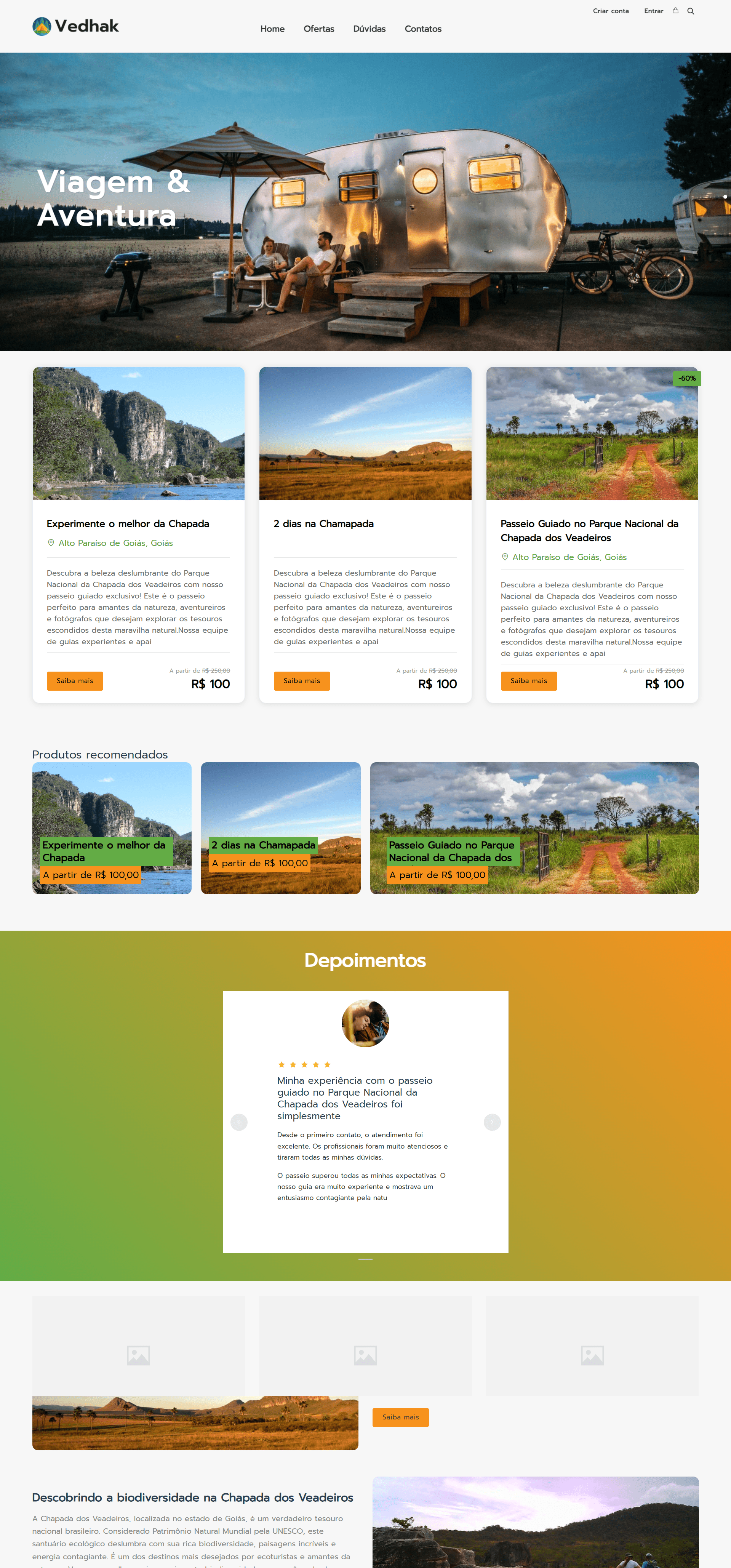 - Descrição: Perfeito para os organizadores de acampamentos turísticos que desejam promover suas experiências e disponibilizar reservas online.